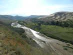 Поросшая травой полупустыня разорвана здесь крутыми обрывами,