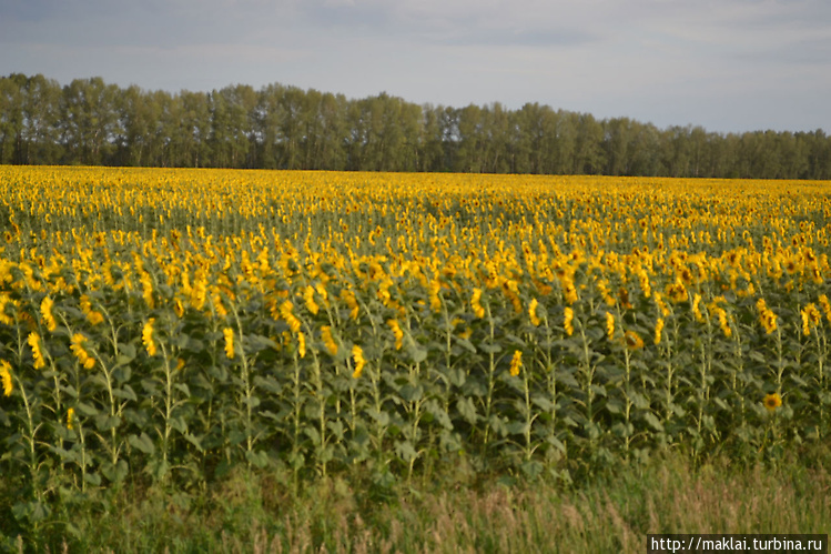 Что говорить, житница Сибири! Правда, пшеница из-за засухи хилая, да и подсолнечник — ей под стать. В одном месте увидели-таки приличный участок этой культуры. При этом, странное дело, головы подсолнухов обращены в сторону, обратную солнцу. Чудно! Видимо, и подсолнухам этим летом поднадоело жаркое светило.