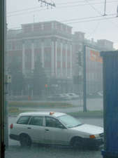 Днем в городе начался дождь, я спрятался от него в каком-то магазине.