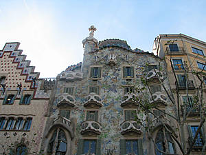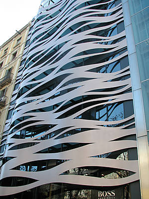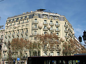 Идем дальше и удивляемся больше.Вот здание с шариками по всему фасаду. Это отель Majestic Barcelona.