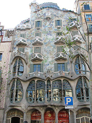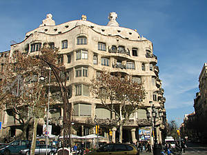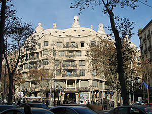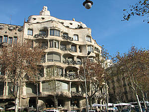 От дома Висенс мы вернулись на улицу Carrer Gran de Gràcia. Мне она показалась созвучной со словом спасибо по испански. И в наших разговорах между собой мы решили, что гуляем по улице Спасибо. Наш путь по этой улице был направлен в сторону центра. И спустя 1200 метров с левой стороны по ходу нашего движения мы увидели первый интересующий нас объект. Это был дом с названием Каса Мила ( дом 92) . Мимо этого дома да и всех остальных творений Гауди пройти трудно. Толпы туристов , фотографирующих объект, не дадут пройти мимо. Это творение почему то для меня было похоже на черепаху. Барселонцы называют этот дом каменоломня из-за его серого, грубо обработанного фасада. Этот жилой дом был построен в 1910 г.