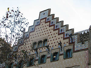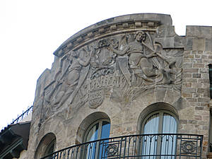 Изогнутый фасад дома Лео Морера отличается богатством и сложностью форм, изысканным скульптурным орнаментом с геральдическими и растительными мотивами.