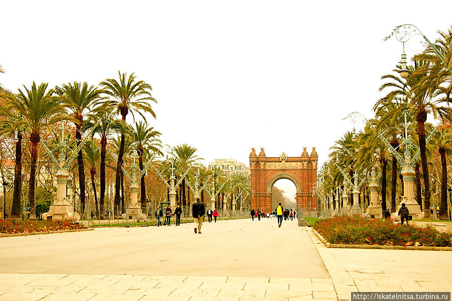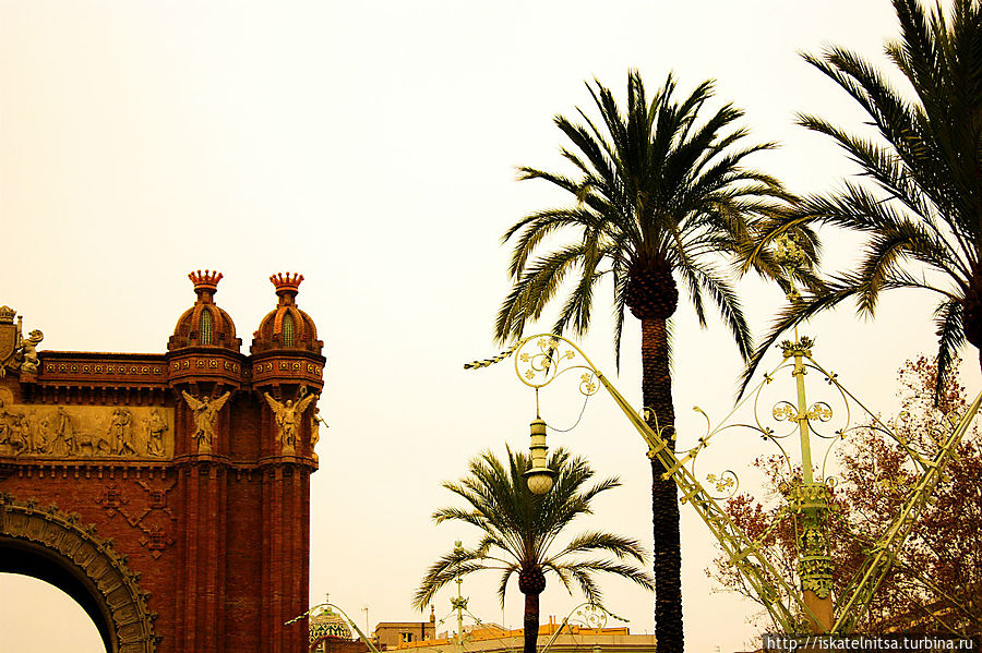 Вообще, что могу сказать: лично мне очень сложно ассоциировать европейское искусство и архитектуру в частности с пальмами, растущими повсюду. А в Барселоне этого добра – хоть отбавляй. Триумфальная арка в конце пальмовой аллеи, на мой взгляд – впечатляющая находка.