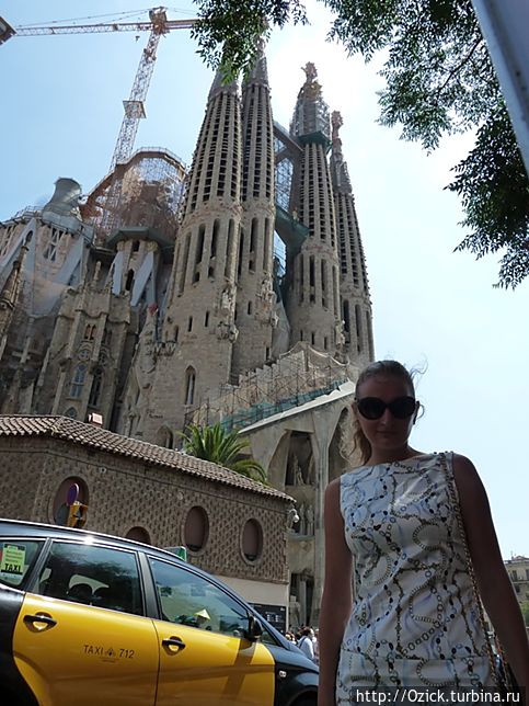 После парка планировали спуститься по Диагонали, в район Эшампле, до Храма Святого Семейства, но время уже затикало быстрее, снова втиснулись в такси на десять минут и девять евро и вот мы уже у самой знаменитой и посещаемой достопримечательности в Барселоне.