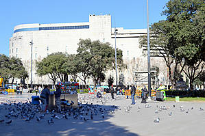 Площадь Каталонии имеет совсем немаленькие размеры. Отсюда берут начало несколько улиц, самые известные из которых это Rambla и Passeig de Gràcia. Её окружают многочисленные здания, в которых располагаются отели, магазины и рестораны. Здесь можно увидеть несколько фонтанов и большое количество скульптур. А еще площадь Каталонии невероятно многолюдна почти в любое время суток. Но самым удивительным для меня стало присутствие невероятного количества голубей, которые все вместе взлетали и кружили над площадью при малейшем более-менее громком звуке.