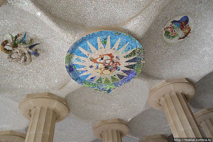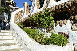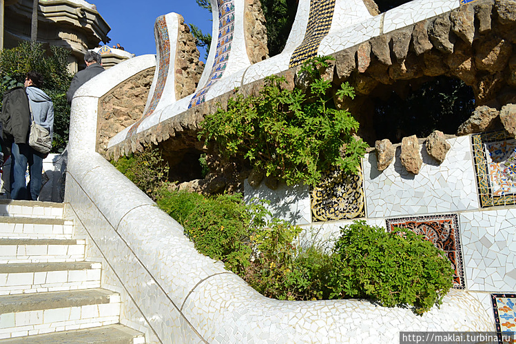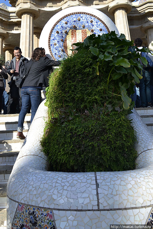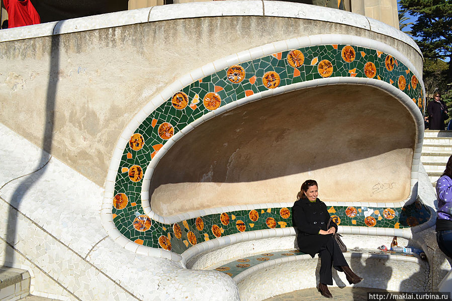 Профилю скамьи была придана специальная форма, совпадающая с очертаниями тела сидящего человека. Гауди, говорят, добился этого, усадив рабочего на непросохшую глину и “замерив” таким образом изгиб спины.