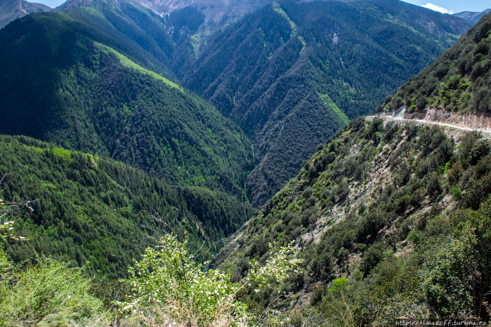 Через 100 км и за перевалом в 4500 на радость всем пошла бетонка. Очень живописно. Ещё один перевал и пара туннелей – и мы в Батанге. Правда, простояли у поста около часа, пока переписывали наши данные из паспортов. При въезде в другой район хорошо отобедали у дунган, вкусно.