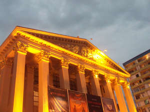 Стилизованный лев стоит возле театра и нагло ухмыляется.Рядом фонтан с нимфами. В него можно залезть и поплескаться, но почему-то неохота. Зачем делать то, что можно делать?