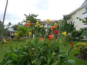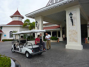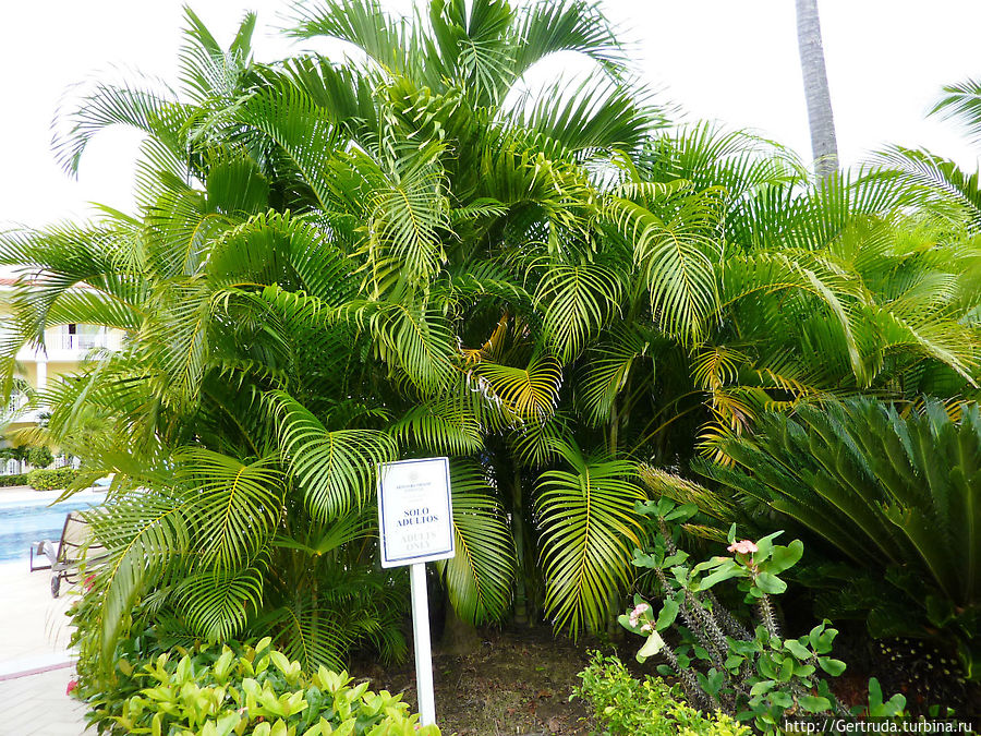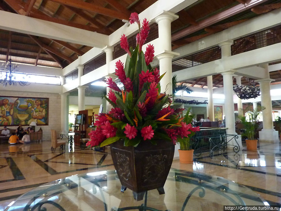 Аэропорт Пунта Каны снаружи не похож ни на один виденный прежде. Он очень экзотичен. Все крыши построек сделаны из пальмовых листьев, а вокруг так же много пальм и цветов. Температура воздуха + 30 С, но внутри исправно работают кондиционеры, прохладно, очень чисто и современно. От стойки турфирмы, где мы заказывали путевки, нас провожают к комфортабельному микроавтобусу, и через полчаса мы уже въезжаем в наш "Resort" Gran Bahia Principe.