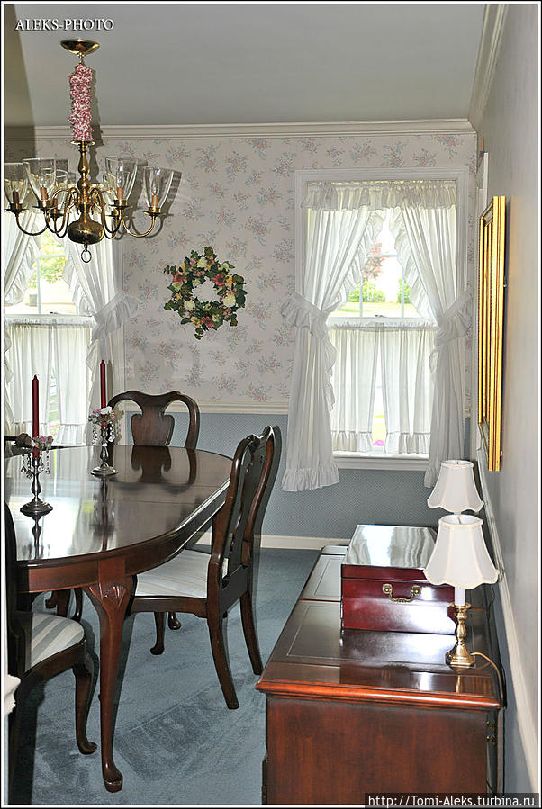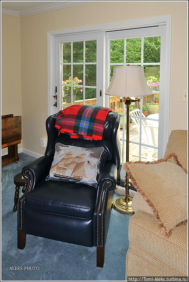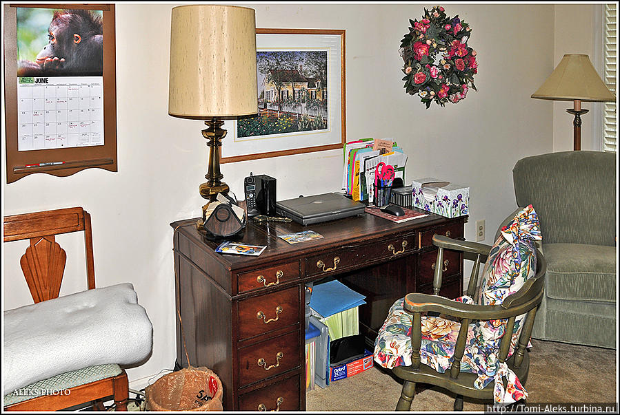 Мы останавливались в семьях пожилых людей. Что я могу сказать про их интерьеры? Как вы успеете заметить на фото, это вовсе не стиль хай-тек, это ближе ко временам первых переселенцев. Часто где-то в гардеробе мелькали ковбойские шляпы, во многих домах были действующие камины, мебель — под старину. Практически все наши хозяева были предками выходцев из разных стран Европы: Германии, Ирландии, Шотландии. И фамилии у них были прикольные — то какие-нибудь шотландские (типа Мак-Дональдс), то режущие слух немецкие. В общем, — полная эклектика, присущая Штатам...