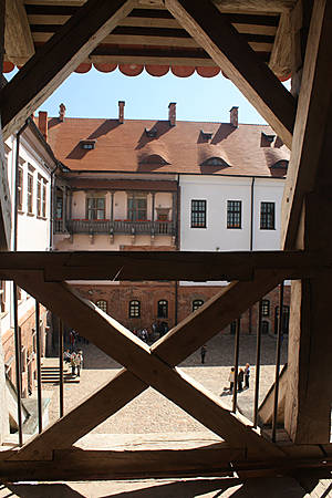 Как же мне понравилось во внутреннем дворике этого замка! Время переносит нас в Средневековье. И Мирский замок, в отличие от своего собрата Несвижского замка, более боевой, суровый по настроению, а тот легкий, изящный, что-то южное, итальянское на мой взгляд в его архитектуре.