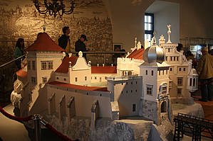 Мы обогнули пруд, посмотрели на усыпальницу и наконец решили войти на территорию замка. Сюда вход бесплатный, а вот внутрь платный, при этом входной билет включает в себя подъем на стены, посещение еврейского гетто, и конечно основную экспозицию.
