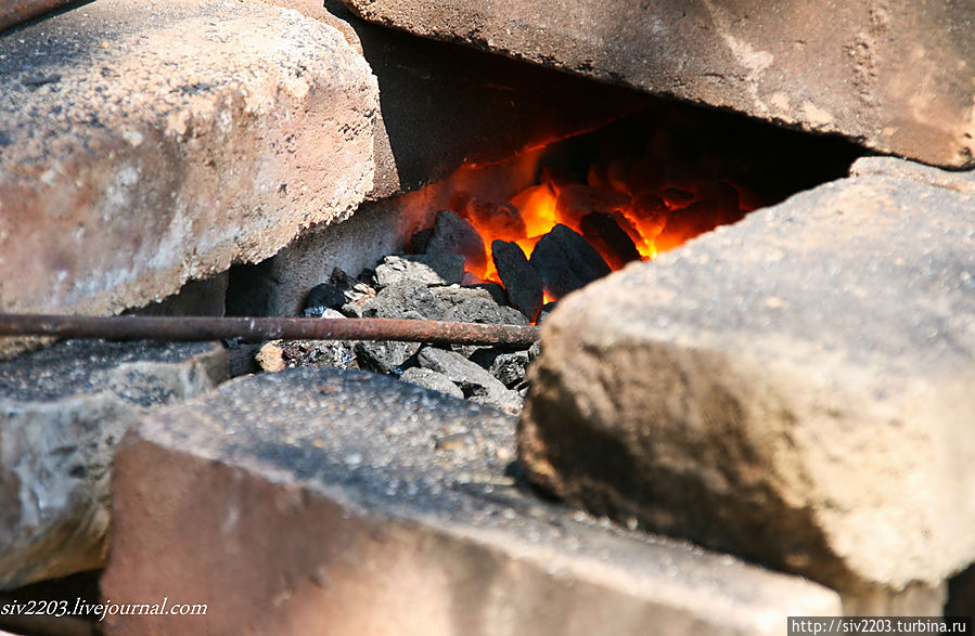 А помощнички его исправно дуют в меха и при этом успевают на девушек заглядываться.
