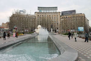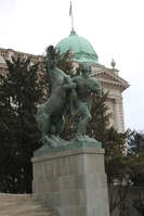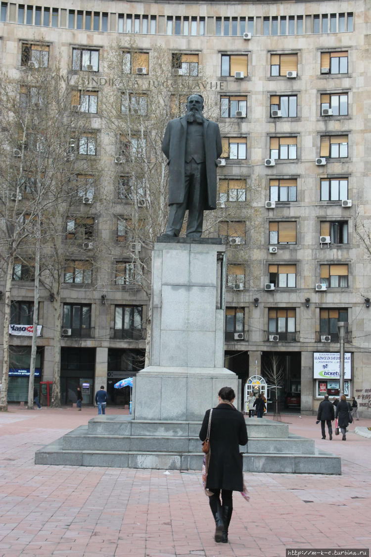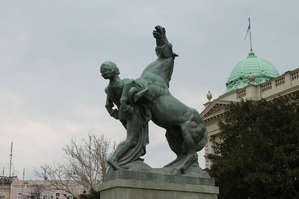 Его название очень интересно. По русски звучит так, что можно предположить о нахождении в здании некоего рынка, где многоуважаемые сербы что-то скупают. На деле все проще. Это Сербский парламент. Здание можно увидеть на многих картинках в путеводителях, посвященных городу. Это настоящий дворец в античном стиле. Перед входом установлена в 1939 году монументальная скульптурная группа "Играли кони вороные", чем то напоминающая Укрощение коней с Аничкиного моста в Питере.Сама площадь в настоящее время растянутая в пространстве территория. Большая площадь перед зданием Парламента плавно перетекает в более узкое пространство, окруженное домами с фонтаном посередине.