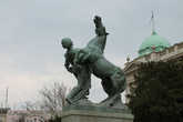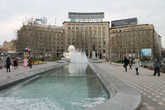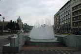 Рассматривая коней у здания Парламента, не оставим без внимания монументальное здание местного главпочтампта. И уже затем отправимся к фонтану. Это самый большой фонтан города, хотя таким совсем не выглядит. Струи воды,бьющие вверх, падая , превращаются в быструю речку. За фонтаном стоит памятник человеку, в честь которого названа площадь. Никола Пашич — бывший мэр города и глава правительства Королевства Сербов, Хорватов и Словенцев. Пешеходная зона площади используется для проведения различных мероприятий. В мой приезд рекламировали фирму символом, которой является вот такой зайчик.
