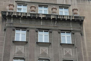 Следующее интересное здание дом № 5 — здание экспортного банка с необычными балконами и названием на сербском Извозна банк.