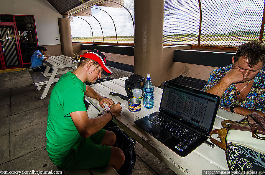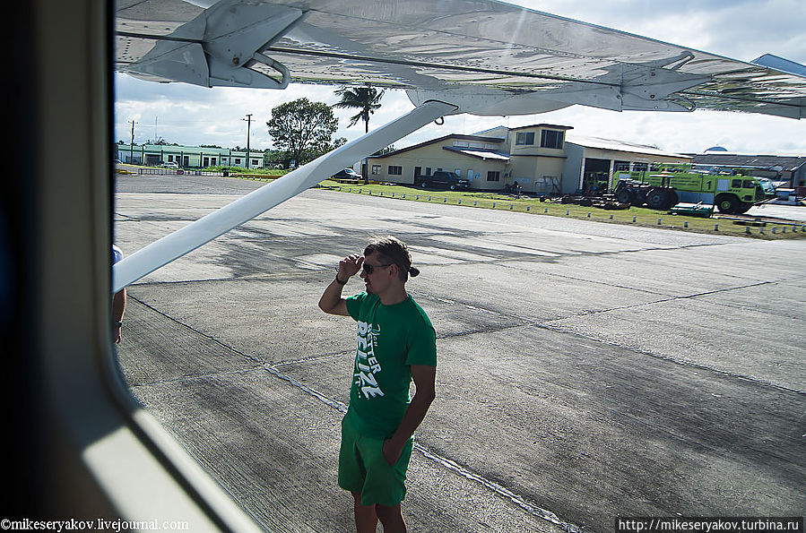 Ну а потом был недолгий путь в аэропорт, где за нами всё-таки прилетел чартерный самолётик марки «Cessna”. Но улететь сразу не получилось, нужно было ещё примерно полтора часа заполнять какие-то бумажки с нулевой смысловой нагрузкой.