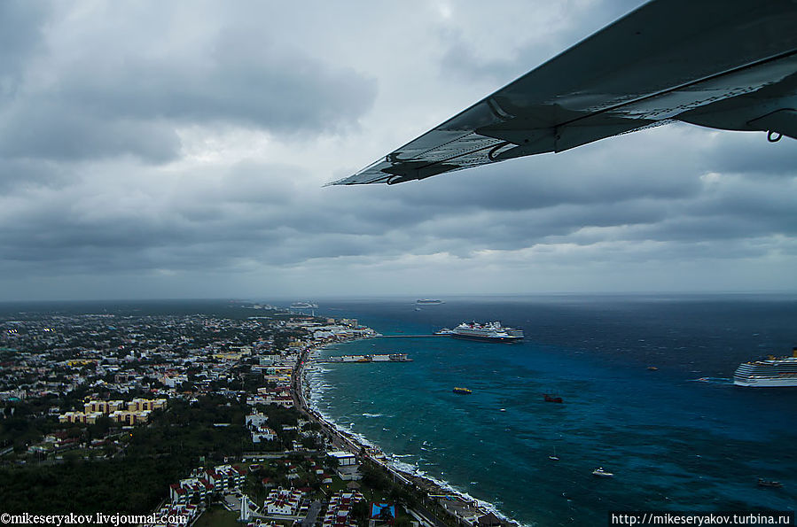 Поскольку в Канкун я летел на частном маленьком самолёте и нам заранее сообщили, что в аэропорту назначения мы не можем пройти таможню и паспортный контроль, мы делали промежуточную остановку на мексиканском острове Косумель для прохождения вышеуказанных процедур.