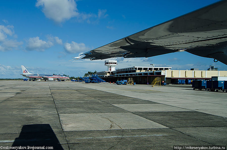 Примерно час я потратил на то, чтобы пройти паспортный и таможенные контроли с пристрастием. Видно, что чартерные рейсы приземляются сюда совсем не часто и ребятам нужно было «сделать вид, что они работают», но зато после наш маленький самолётик взял курс напрямую на Канкун.