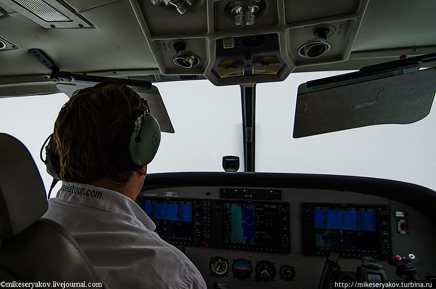 Я первый раз летел так близко к пилоту на маленьком самолёте и понял, что самолёт – это не автомобиль, тут летишь, совершенно вслепую, мы летели прямо практически в глухие облака на автопилоте.