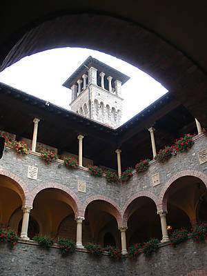 Между замками Кастельгранде и Сассо Корбаро лежит прелестный Старый город, где есть строения XV в., но большинство — XVIII в. Мне очень понравилась Ратуша с замечательным внутренним двориком и старинными витражами.
