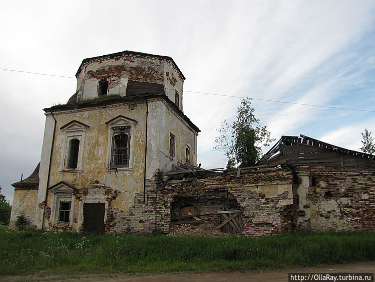 Церковь Покрова Богородицы (1740). Искали деревянную Ильинскую церковь, с которой рядом расположен этот храм. Деревянной не нашли (утрачена?), а очередную разрушающуюся красоту увидели.