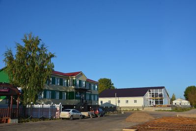 В центре посёлка надо свернуть с М8 на Двинскую улицу к реке и причалу.