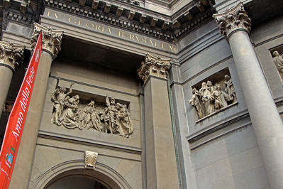Церковь оказалась, как художественный музей. Сперва обратили на себя внимание богатые барельефы на фасаде здания