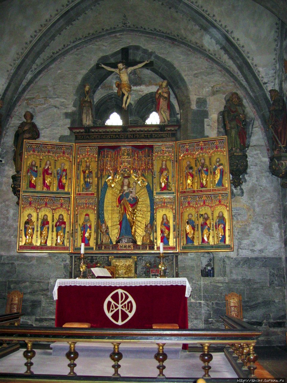 Старый портовый квартал Брюгген - объект ЮНЕСКО № 59, потому и не искали кафедральный собор города (как правило посещаемый мной в каждом городе, будь на то правильно сложившиеся обстоятельства). Мы заглянули в приходскую церковь св. Марии, находившуюся на холме над старым портом. Надо сказать, это не рядовая церковь. Ее построили в 1140-1180 годах, и именно Мариякирхен — самое старое сохранившееся здание в городе.