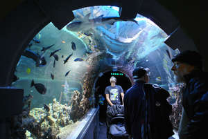 Будьте готовы к тому, что аквариум не произведет впечатления, особенно если есть с чем сравнивать. Но есть у него и изюминка – он уютный, какой-то домашний с очень доброжелательной атмосферой. Возможно, все дело в его разнообразных активностях для детей и взрослых. Например, при входе малышне предлагают разобраться на практике, кого из представителей морской фауны можно безбоязненно потрогать. Для этой цели в открытом низком аквариуме, напоминающем фотокювету, находятся крабы, морские звезды и рыбки.