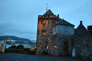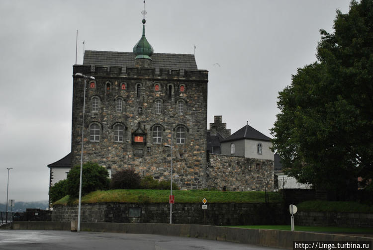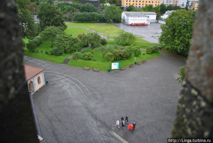 но мощь стен просто поражает, а с крыши открываются впечатляющие виды на исторический центр, набережную и окружающие Берген горы, за которые цепляются не то облака, не то туман. Красиво!Спустившись, мы сделали небольшой кружок по территории Бергенхус, дождь то накрапывал, то переставал. По пути нам время от времени попадались организованные минигруппки в одинаковых головных уборах: то в турецких фесках, то в шляпках. По всему видно, где-то что-то происходит. Нам только не понятно – это всегда так в Бергене или в этот день. Денис зашел в башню, чтобы взять проспект, с которым шли буквально все, кто нам встречался. Там он и узнал, что в Бергене проходит ночь культуры – «Пятница, 13». На многие объекты культуры вход свободный, идут концерты в церквях и на открытых площадках. Что-то уже закончилось, но на некоторые мероприятия мы успеваем. На карте нам их даже отметили.