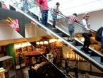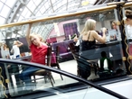 Стеклянный купол и металлические конструкции потолка, пальмы в кадках, придают свой колорит, а удобные диваны позволяют расслабиться в непринужденной обстановке. В то время, как на 6 этаже уютно, но высокие барные стулья не позволяют принять удобную позу и разложить свои многочисленные покупки.