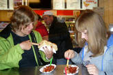 В таких местах нужно быть бдительными к своим вещам, очень много карманников вертится как раз рядом с такими закусочными.