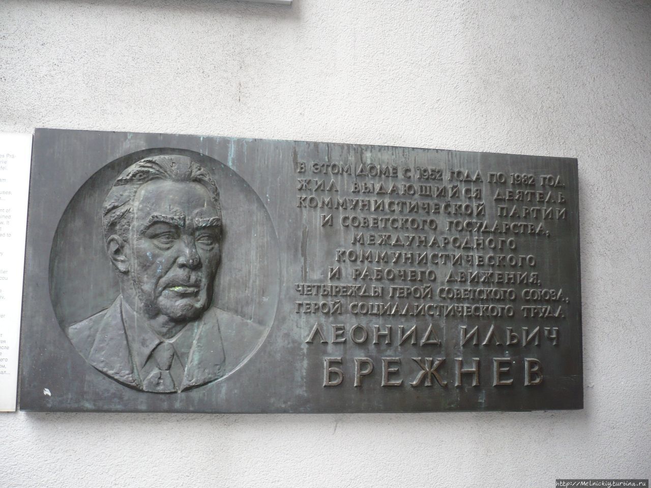 Возле музея установлены остатки стены, мемориальная доска с дома, где проживал последние годы Л.И. Брежнев.