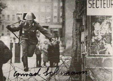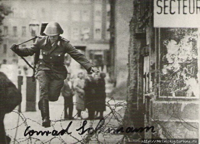 Знаменитое фото «Прыжок к свободе». Немецкий военнослужащий Конрад Шуманн перепрыгнул заграждение и оказался на свободном Западе. На территории ГДР остался дом, семья, друзья. После падения стены Шуманн встретился со своими друзьями и родственниками, многие не стали с ним разговаривать. История кончилась трагично – Конрад Шуманн покончил с собой. Стоило бежать на Запад? (фото из интернета)