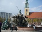 Фонтан «Нептун» расположен между Красной ратушей и церковью Святой Марии. Фонтан изготовлен скульптором Рейнгольдом Бегасом и установлен в 1891 году на Дворцовой площади перед Городским дворцом. Из огромной раковины возвышается торс бога морей в окружении маленьких детей. Раковину поддерживают четыре тритона, а саму чашу фонтана окружают четыре женские фигуры, изображающие реки Германии – Рейн, Вислу, Одер и Эльбу.