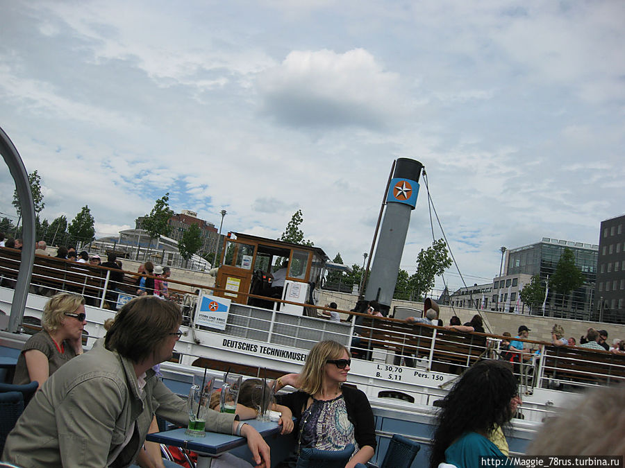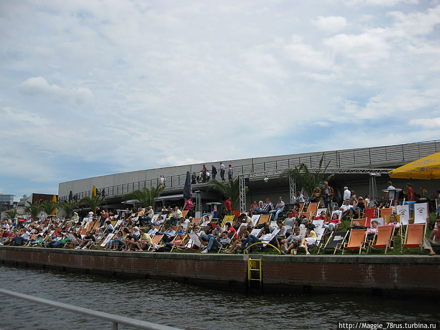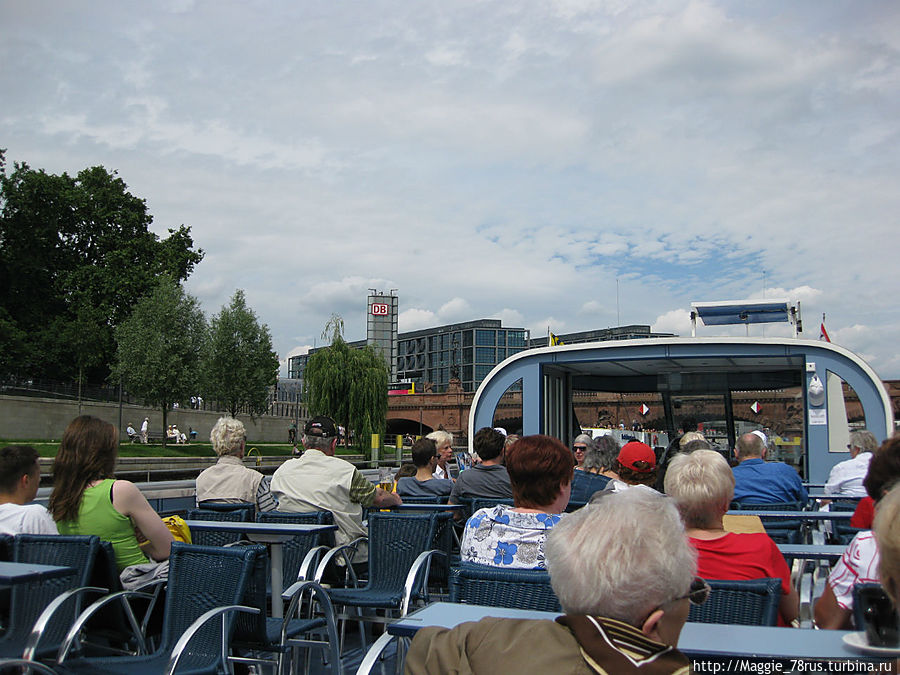 Прогулка по Берлину у меня любовь взаимная. Этот город понравился мне с первого взгляда, видно поэтому, каждый мой приезд, Берлин встречал меня чудесной погодой. Но однажды он даже переборщил. Начало июня, а жара стоит под 30 С. Куда деваться от жары. Решили пойти поближе к воде, где на берегу Шпреи можно отдохнуть на лежаках в тени установленных в кадках пальм. Здесь в барах подают пиво и экзотические коктейли...но посмотрели на проплывающие мимо разномастные теплоходики, и решили, что лучшего "спасения от жары" , чем прогулка по реке на одном из них, и не придумаешь.