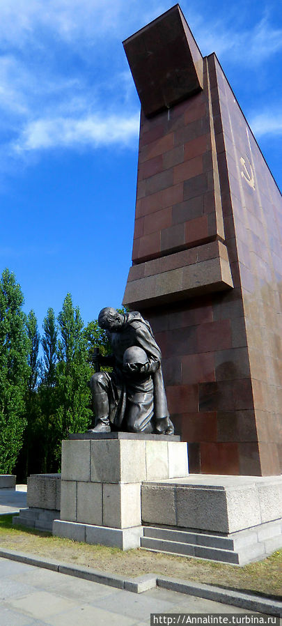 Ты поразил меня в этот раз сразу, на первой же остановке – в Трептов-парке, где стоит монумент Советскому воину-освободителю. Он возвышается на холме, над рядами могил с нашими солдатами, держа в одной руке меч, а другой поддерживая маленькую девочку. Пожалуй, равные по силе чувства, я испытывала только когда была в Брестской крепости.