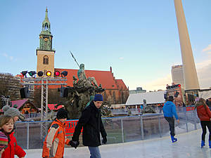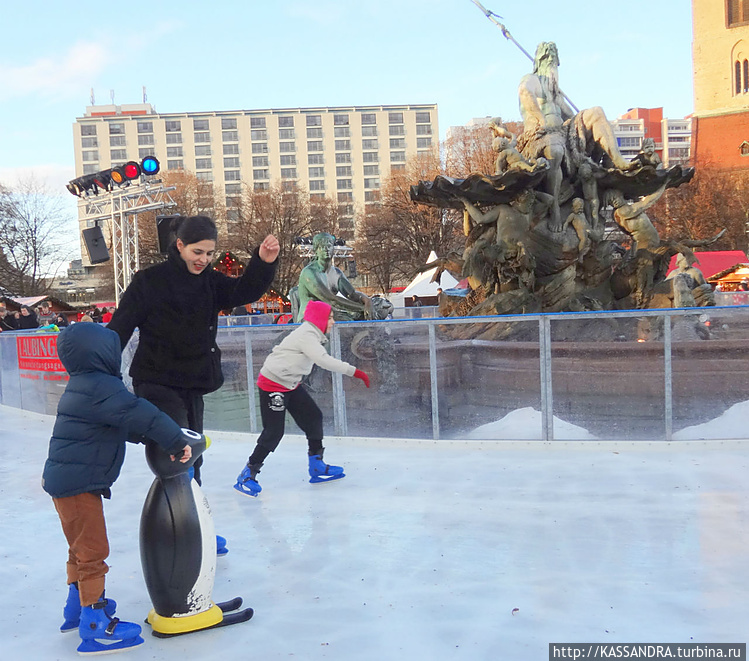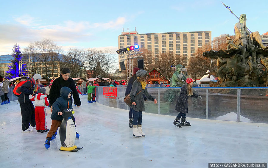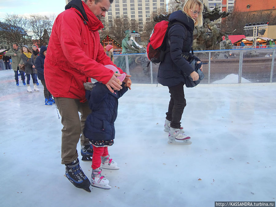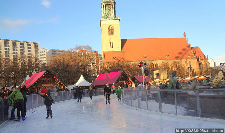 В Берлине каток расположен возле Старой Ратуши, что на площади Молькенмарк.