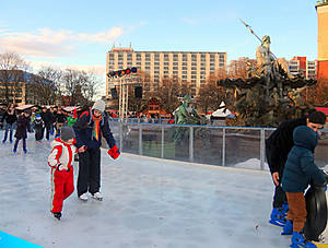 Особенностью этого катка и его украшением стал Фонтан «Нептун» ( Neptunbrunnen). Именно вокруг знаменитого фонтана, любимого места туристов, катались на коньках горожане.