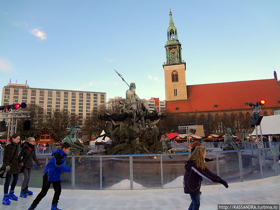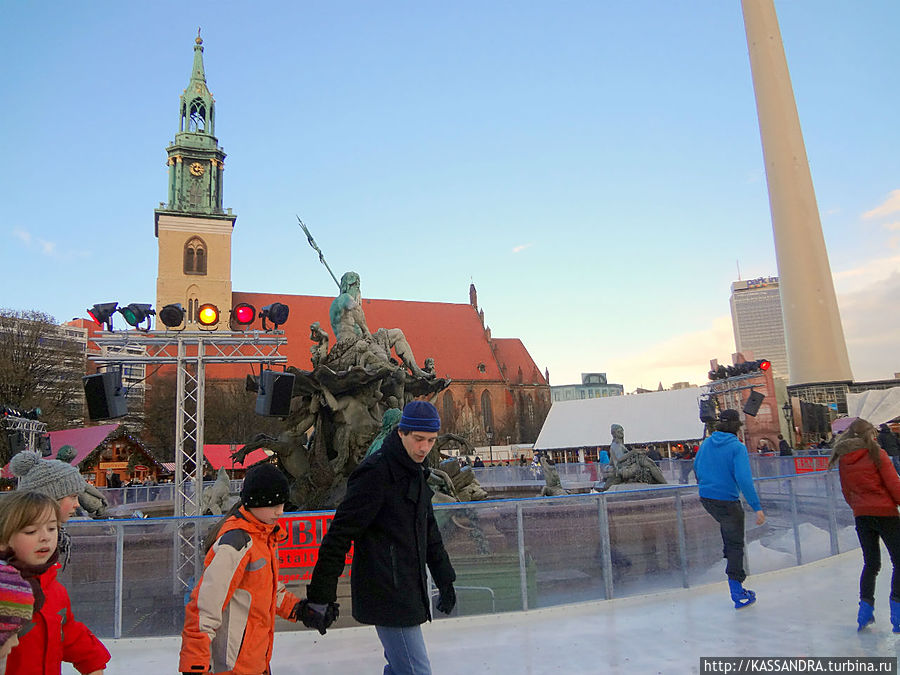 Между церковью Мариенкирхе и Красной ратушей в Берлине в декабре залили каток.