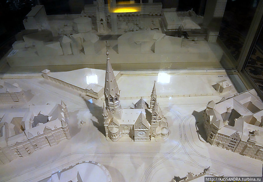 Здание церкви, построенное в 1895 году можно увидеть на макетах, представленных внутри.