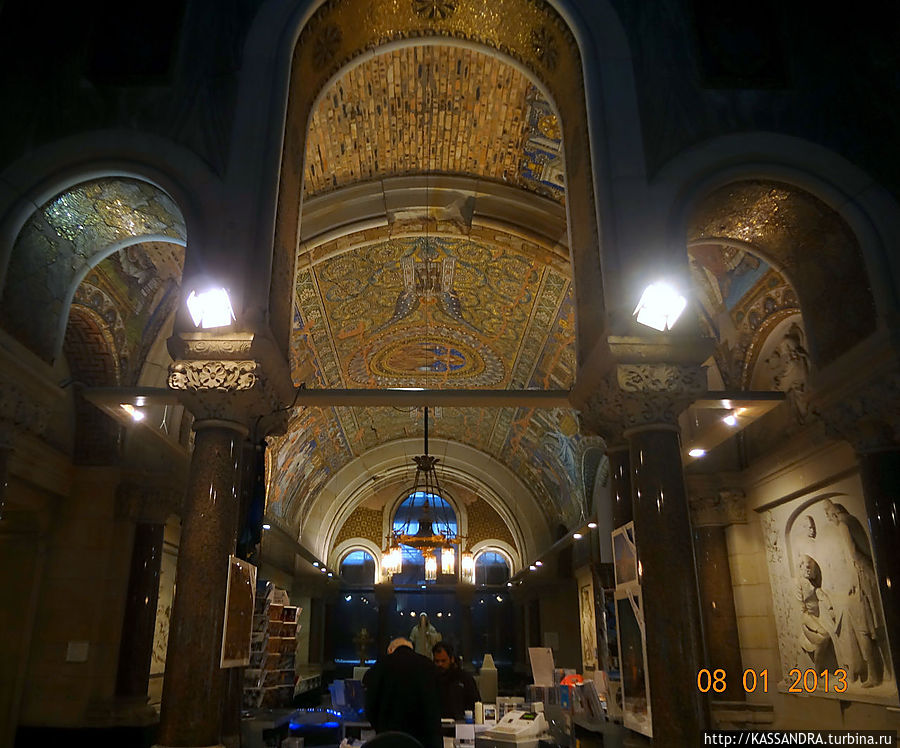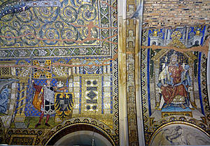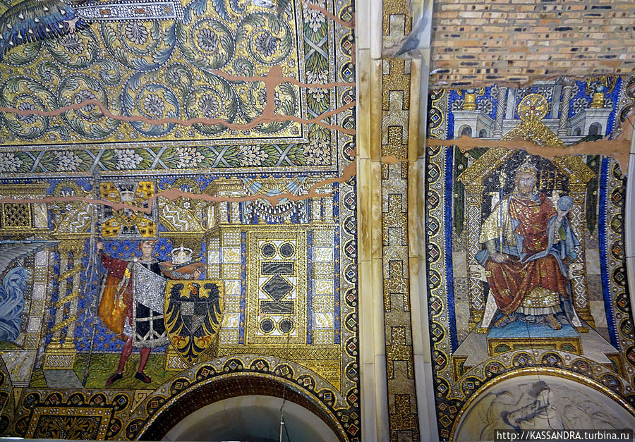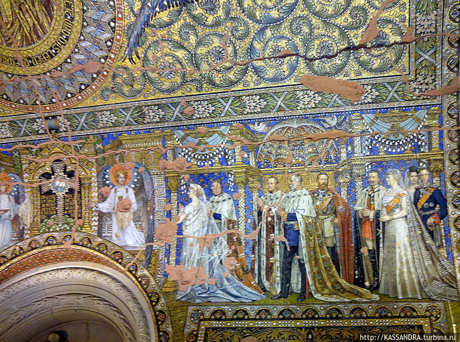 Внутри церкви сохранились многие детали интерьера, барельефы и потолочная мозаика.
