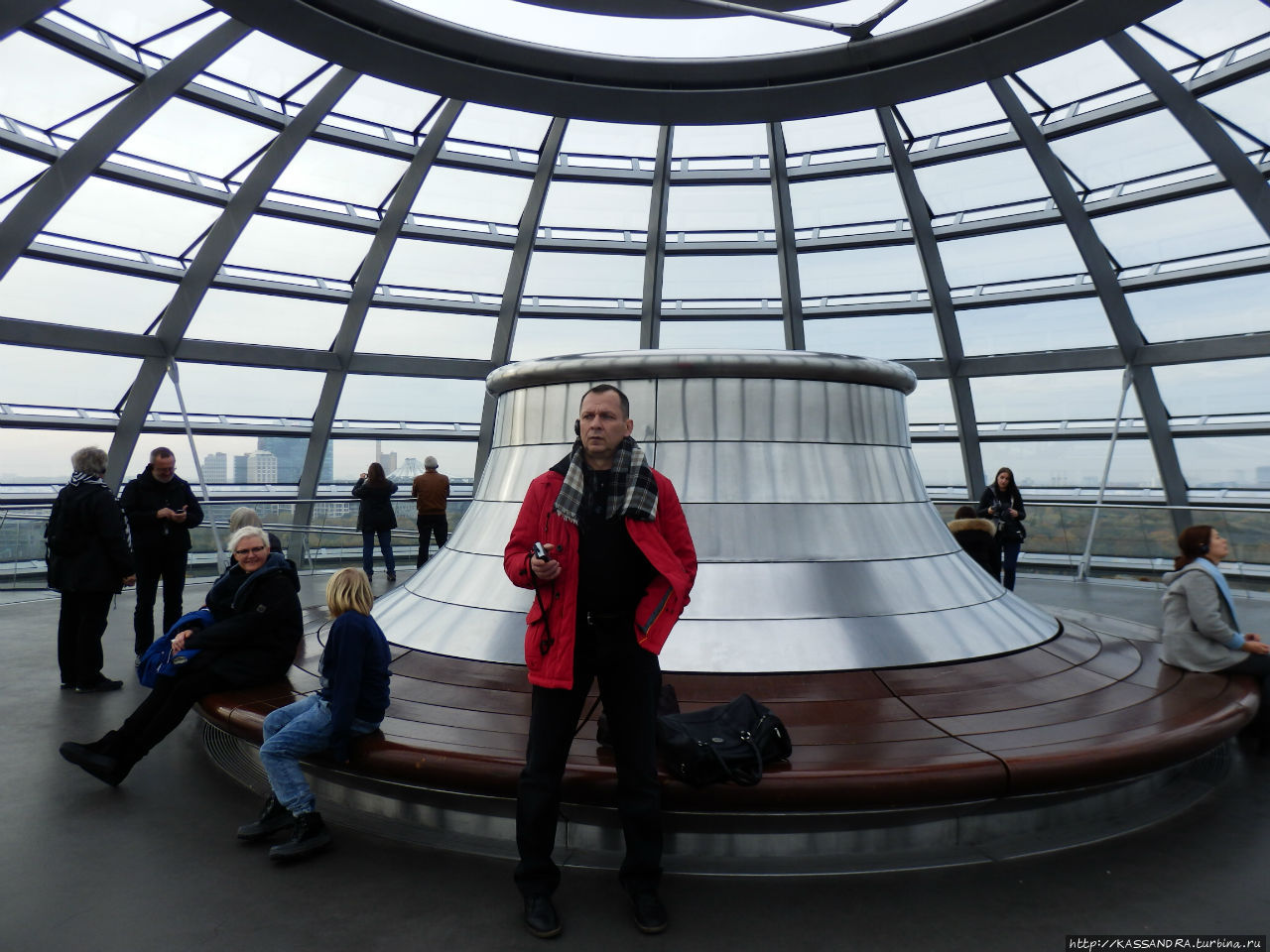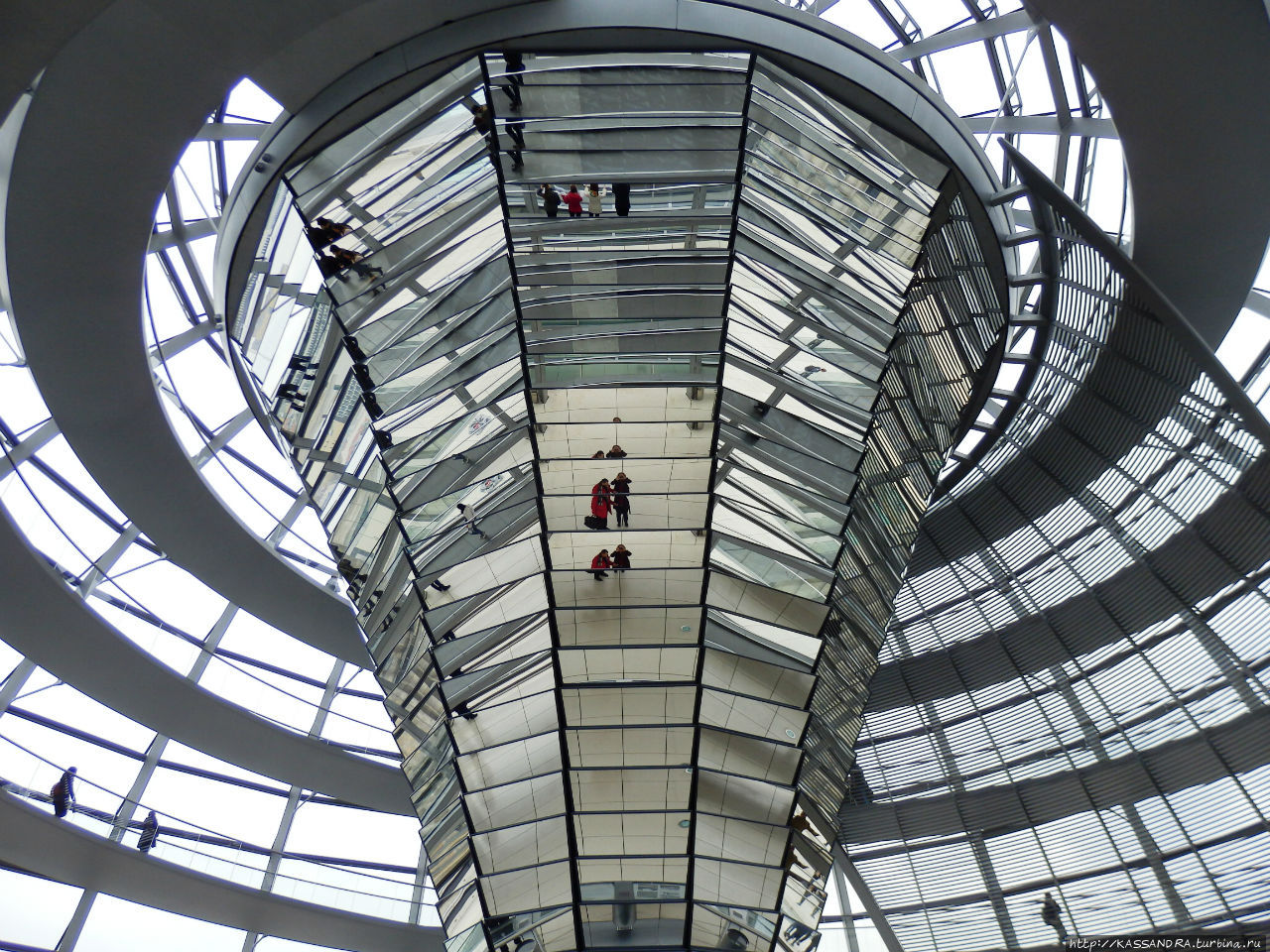 С высоты стеклянного купола Рейхстага интересно смотреть на районы Берлина. Мысли всех посетителей Рейхстага, наверняка возвращаются к событиям 1945 года.