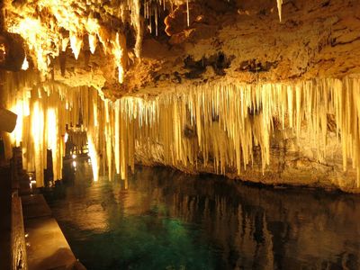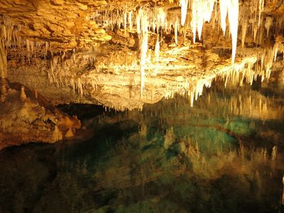 Эта пещера красива тем, что на ее дне находится озеро, оно довольно глубокое, а посередине проходит мостик. Сталактиты отражаются в прозрачной воде, которая благодаря подсветке приобретает прекрасный оттенок. Не зря пещера называется Хрустальная.