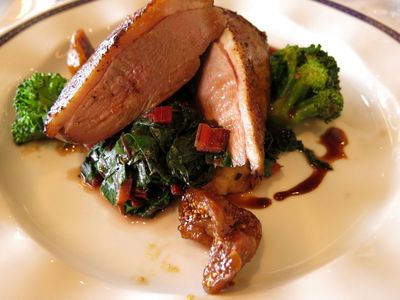 Утка в соусе не помню в каком, но очень сочно, и не по-американски жирно.