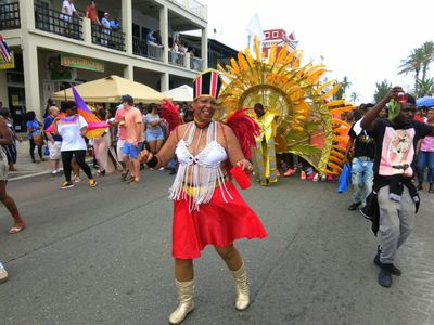 Второй день нашего прибывания на Бермудах наш встретил большим праздником. Это был День Бермуд или Исторический день или День Королевы. То есть название на любой вкус. По этому случаю было много празднеств и завершал его парад — карнавал. Костюмы были шикарные, особенно у короля.