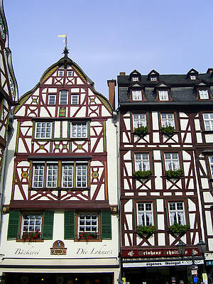 Это маленький городок, в котором проживает сегодня от силы 8 тысяч человек. Нам удалось побывать в той части, что носит название Бернкастель: он буквально завораживает своей архитектурой — здесь огромное количество зданий, выстроенных в стиле фахверк.