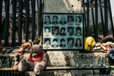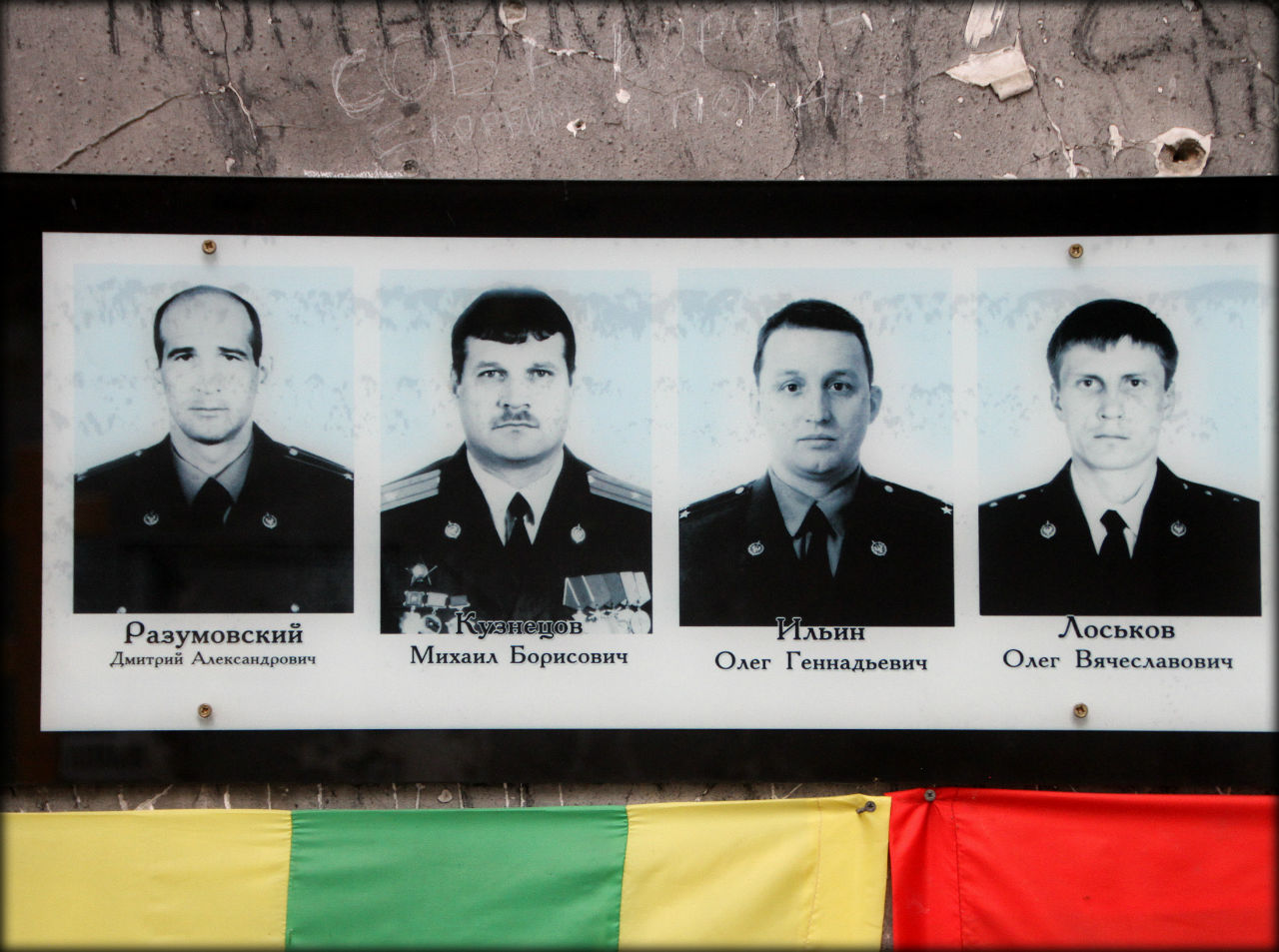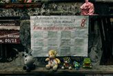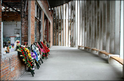 Само здание оставили как есть, появились только щиты с напоминаниями и именами погибших.