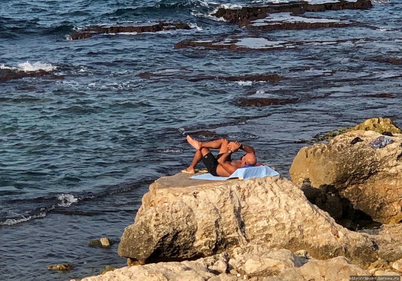 Здесь участок совершенно дикого обрывистого берега Средиземного моря.